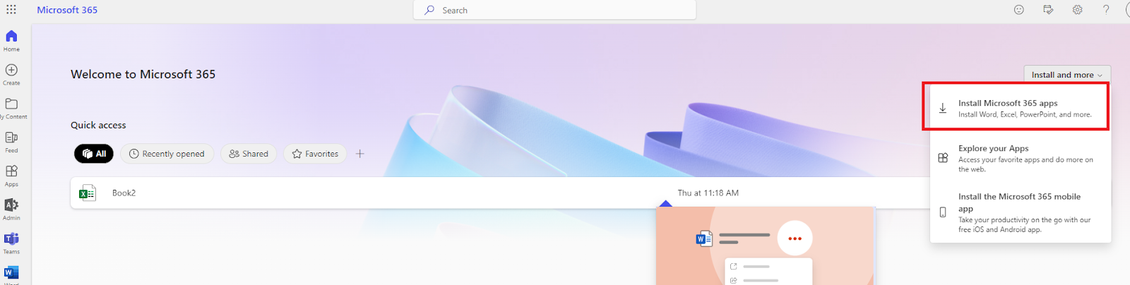 After the Office 365 package is installed, use your Office 365 account to activate it (You can open Word or Excel, and it will pop up the sign-in page to activate)