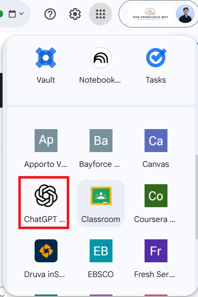Launch: You will be automatically redirected to the secure SFBU ChatGPT workspace.